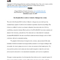 The work of the Brandeis BLK Archives Collective in the past two and a half years has examined many aspects of archival work in relation to questions of power and privilege. The Collective (or BBAC for short) was formed at Brandeis University in the fall of 2016 by establishing connections between Black activists of the #FordHall2015 movement, students and alumni of the University, and archivists. The initial aim was to talk about how to properly document #FordHall2015, the most recent Black student movement, through a series of video conference calls and a community meeting.
